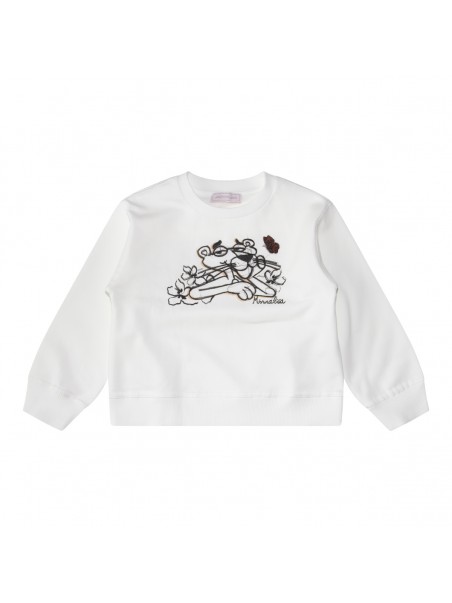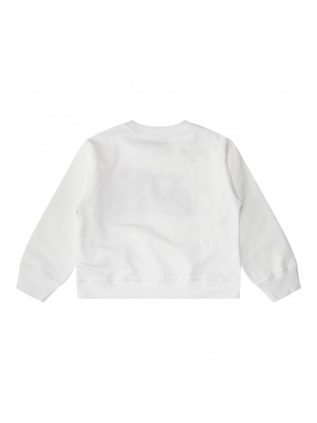 White cotton swestshirt from Monnalisa featuring long sleeves, round collar, straight hem, regular vestibility, ribbed hem and cuffs and frontal print.