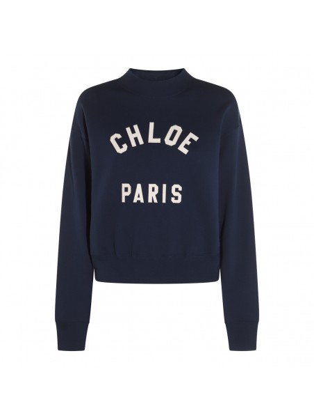 Navy cotton sweatshirt from Chlofeaturing round collar, long sleeves, frontal logo and regular vestibility.