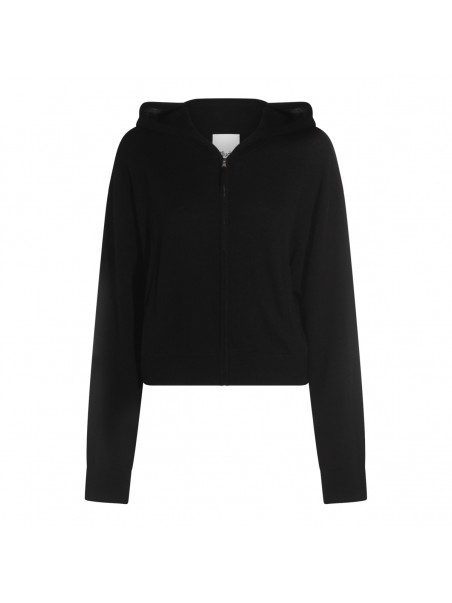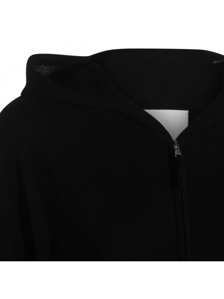 Black wool sweatshirt from Allude featuring long sleeves, hood, zip fastening and soft vestibility.