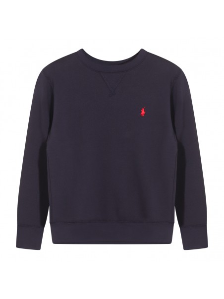 Navy cotton sweatshirt from Polo Ralph Lauren featuring round collar, long sleeves, ribbed cuffs, embroidered red logo, ribbed hem and regular vestibility.