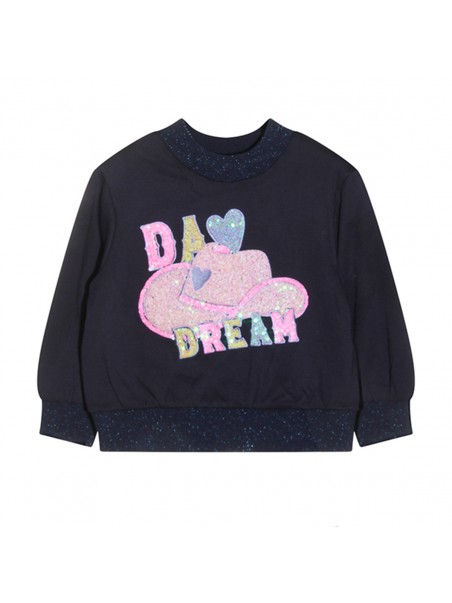 Blue sweatshirt from Billieblush featuring round collar, long sleeves and regular vestibility.