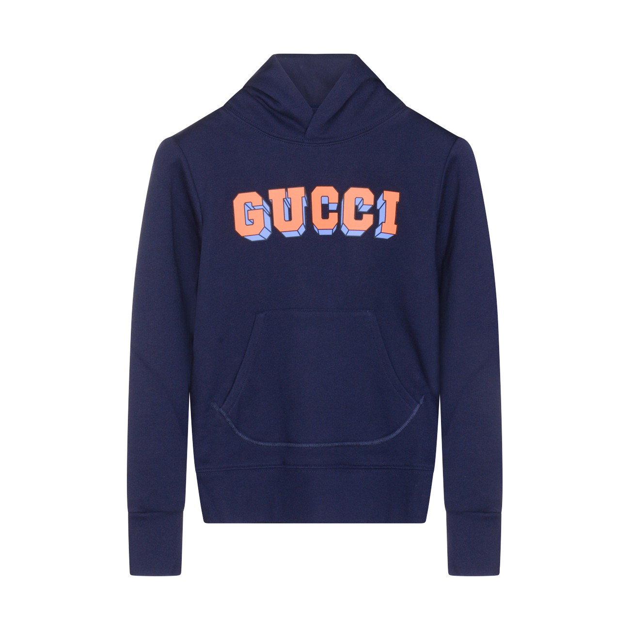 Blue sweatshirt from Gucci featuring hood, long sleeves, frontal print, kangaroo pocket and regular vestibility.