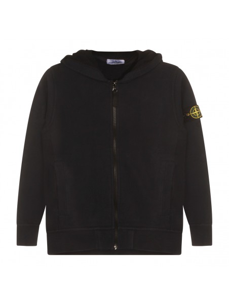Navy cotton sweatshirt from Stone Island featuring hood, long sleeves, zip fastening, logo patch and regular vestibility.
