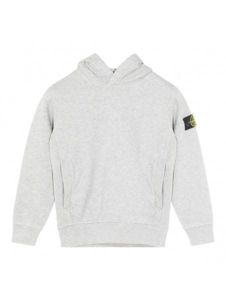 Grey cotton sweatshirt from Stone Island featuring hood, long sleeves, logo patch at the sleeve and pockets.