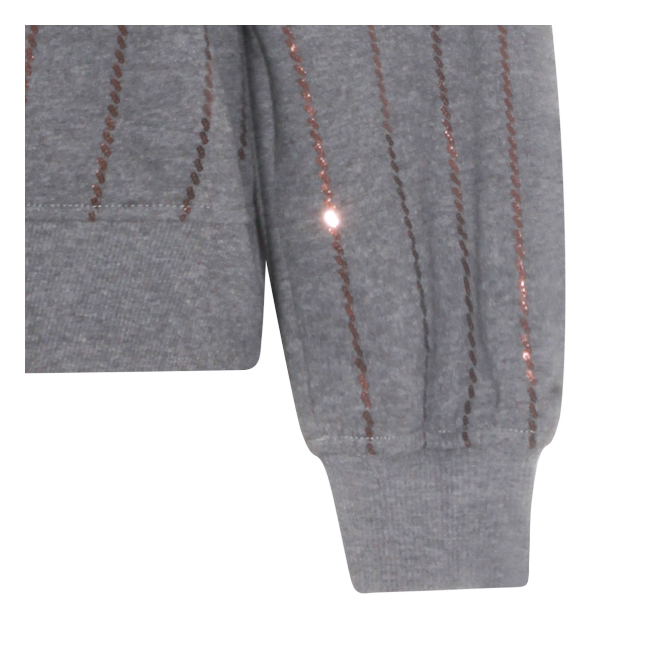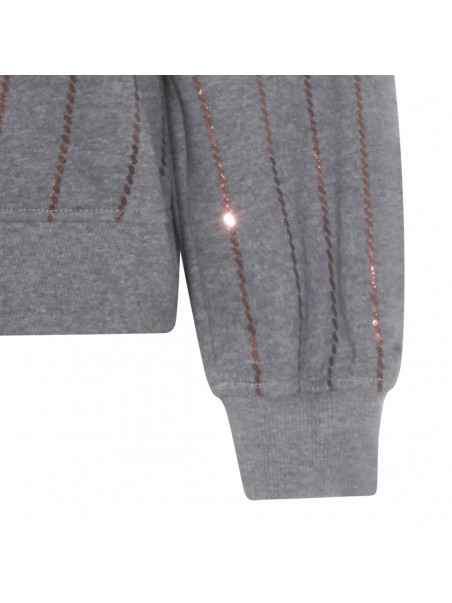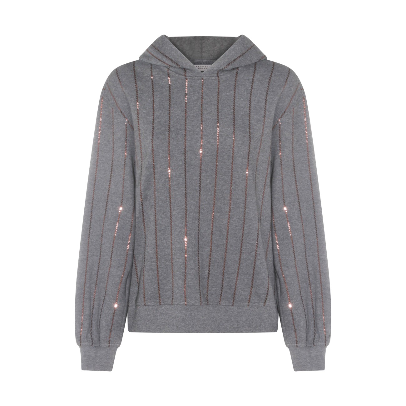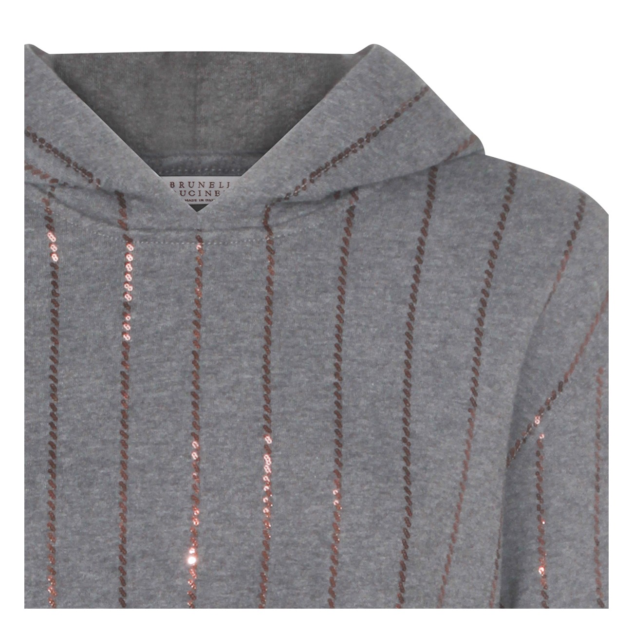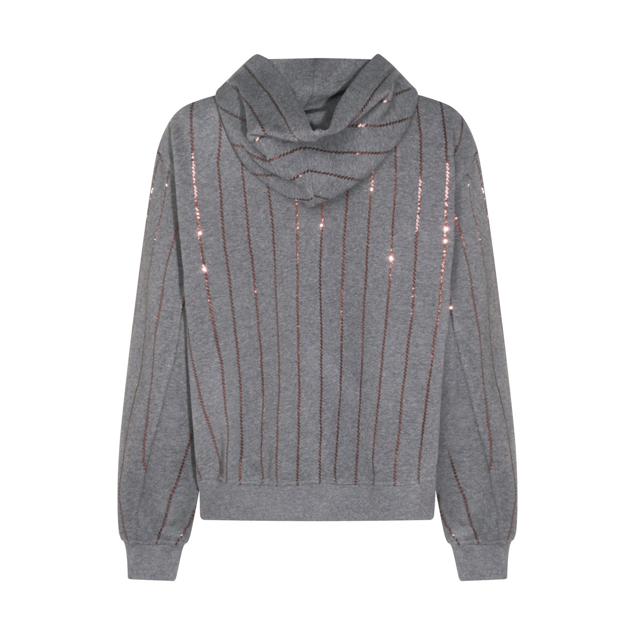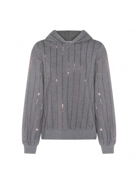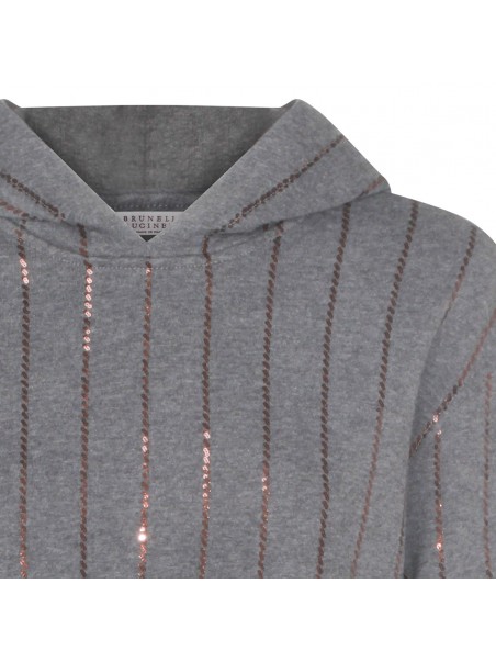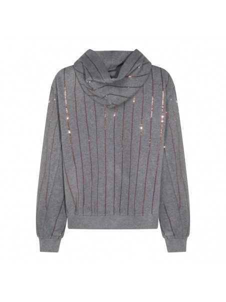 Grey cotton sweatshirt from Brunello Cucinelli featuring hood, long sleeves, vertical sequins pattern and regular vestibility.