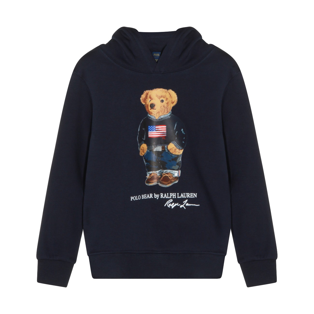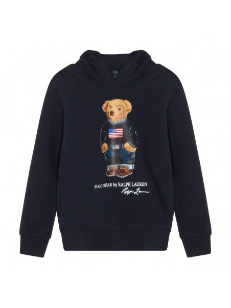 Blue cotton blend sweatshirt from Polo Ralph Lauren featuring hood, long sleeves, frontal stamp and regular vestibility.