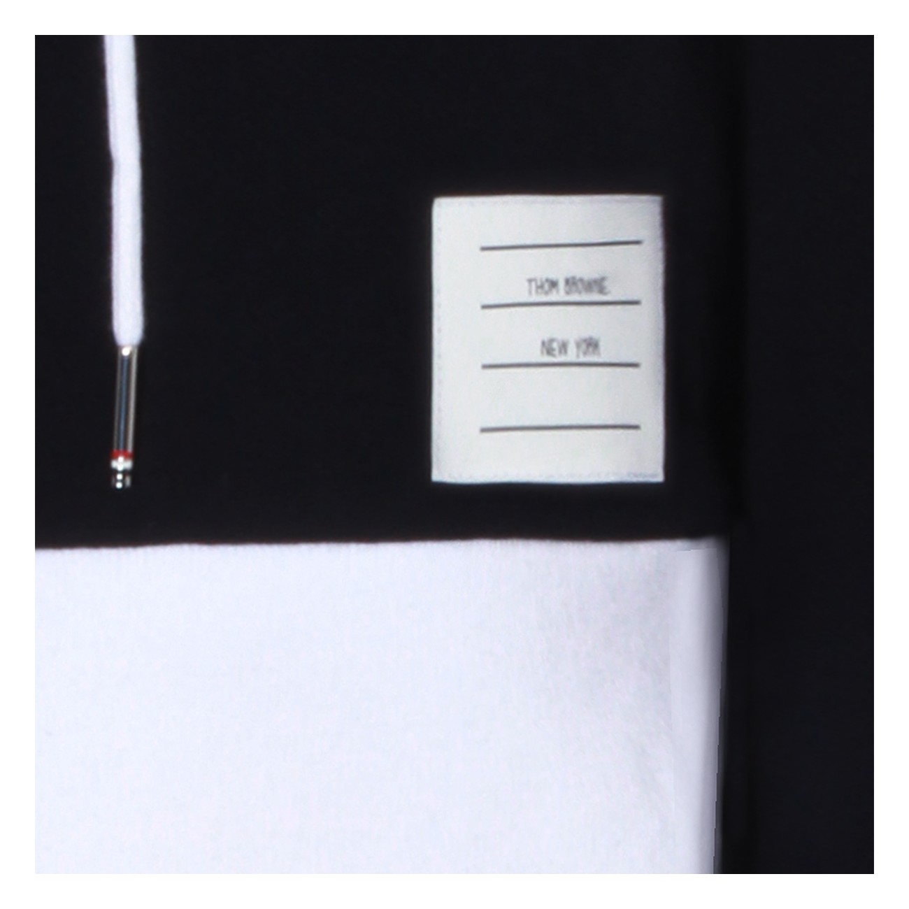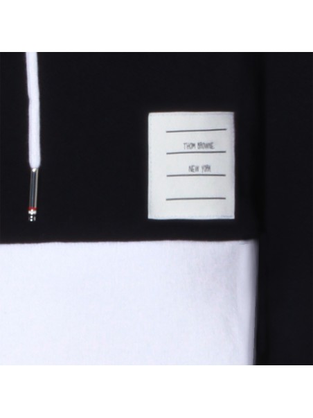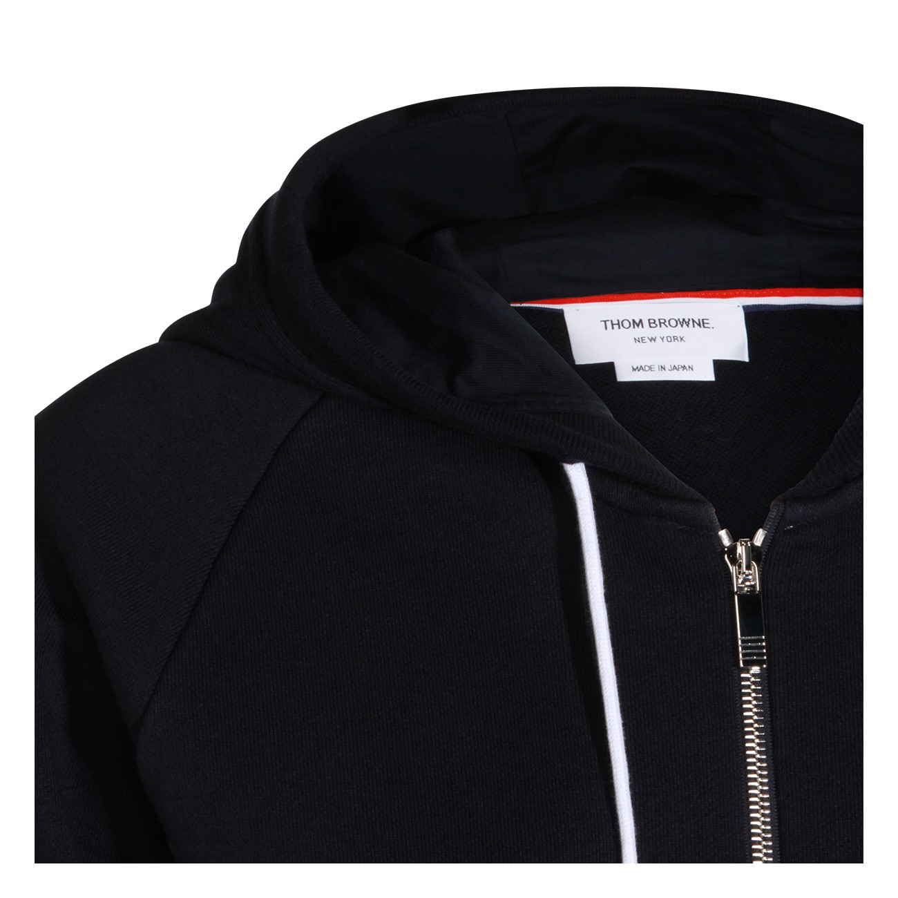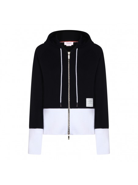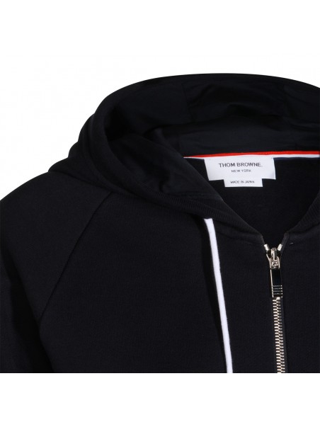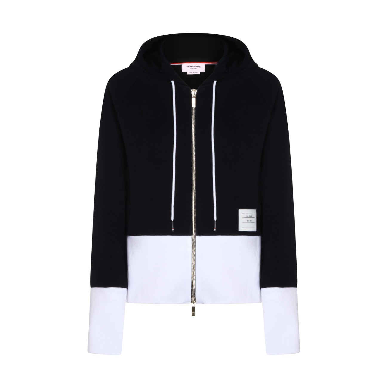 Navy cotton sweatshirt from Thom Browne featuring hood, zip fastening, long sleeves, white details and regular vestibility.