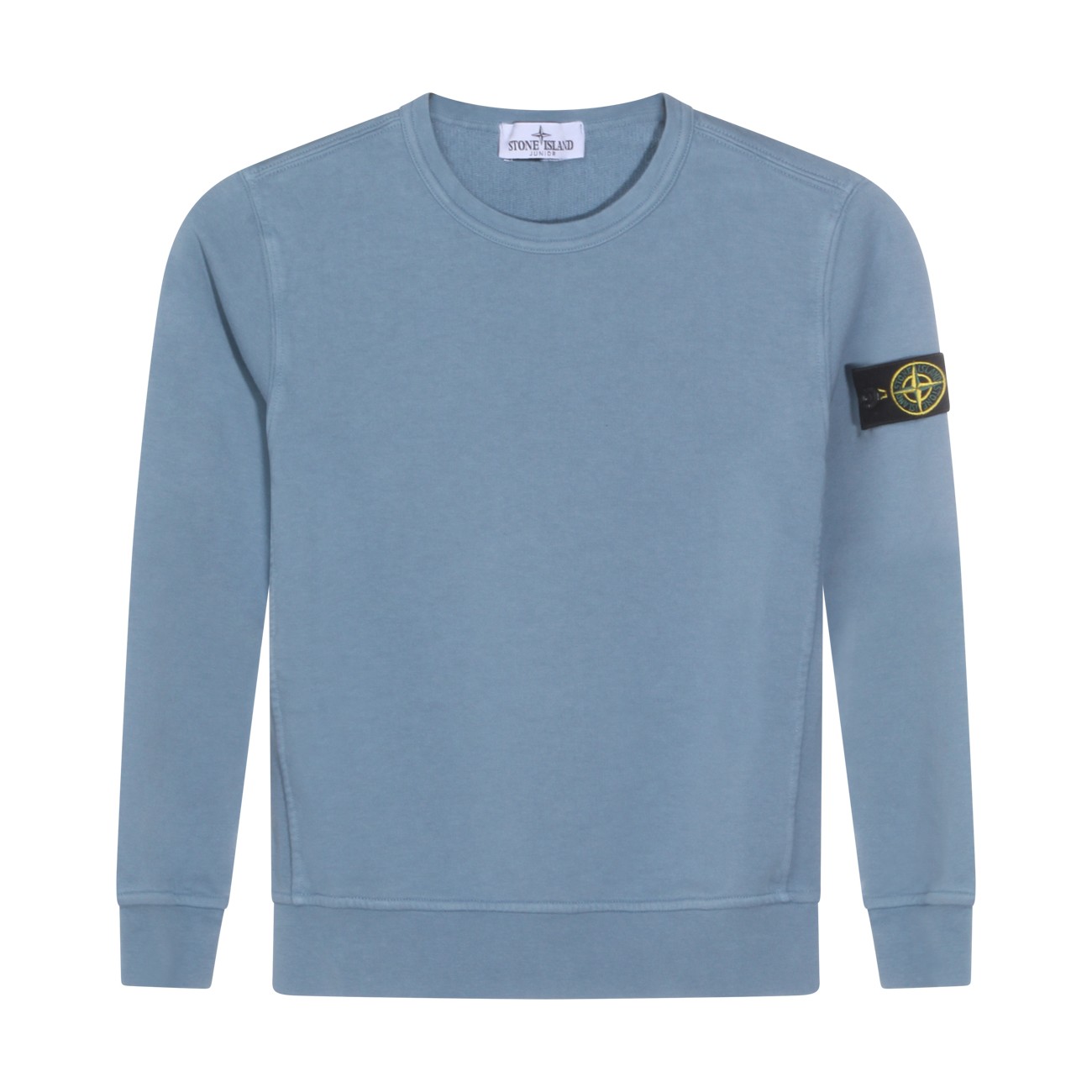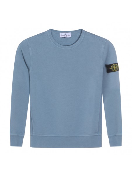 Dust blue cotton sweatshirt from Stone Island featuring round collar, long sleeves, ribbed cuffs and hem and logo patch.