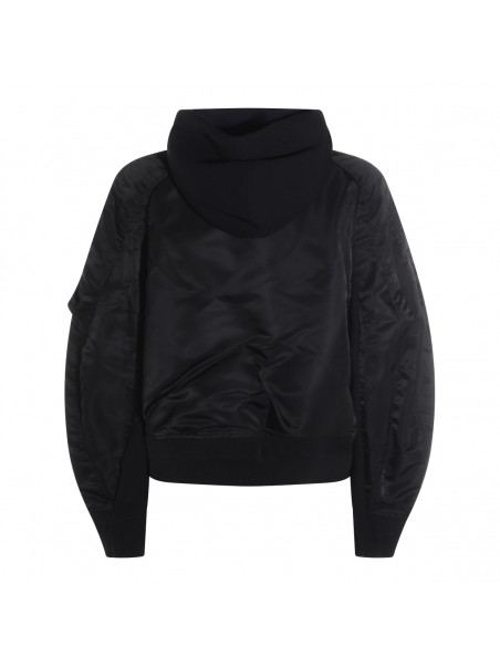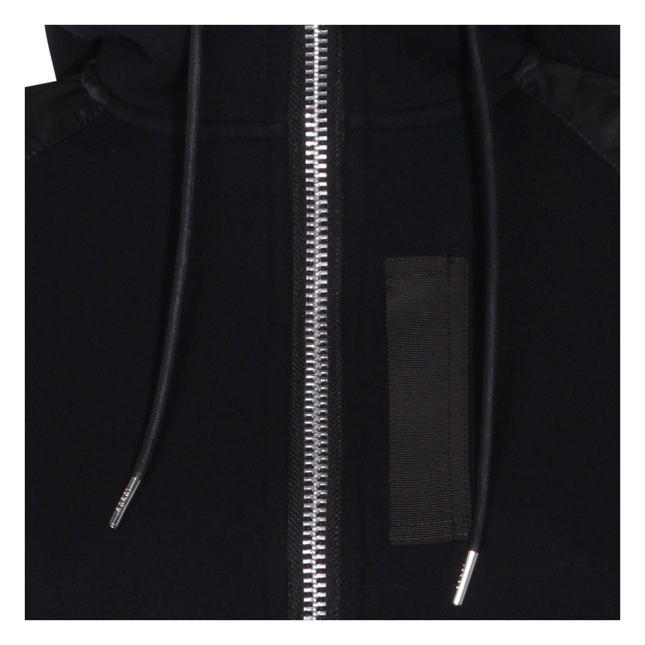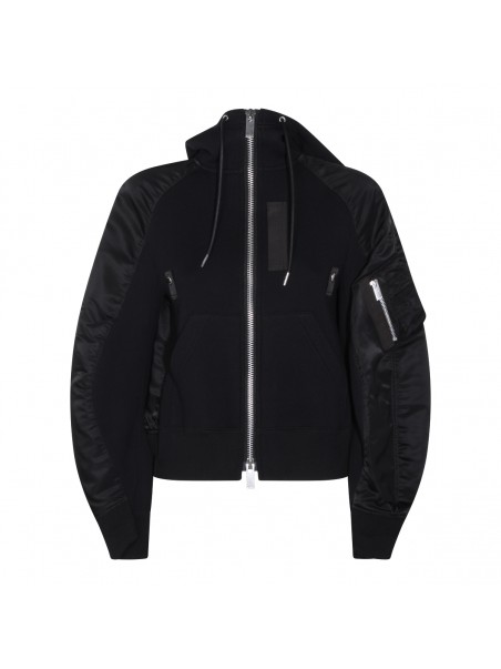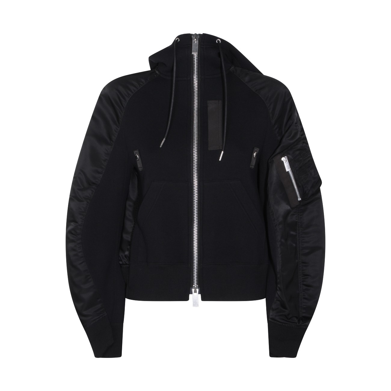 Black cotton sweatshirt from Sacai featuring long sleeves, zip fastening, pockets and regular vestibility.
