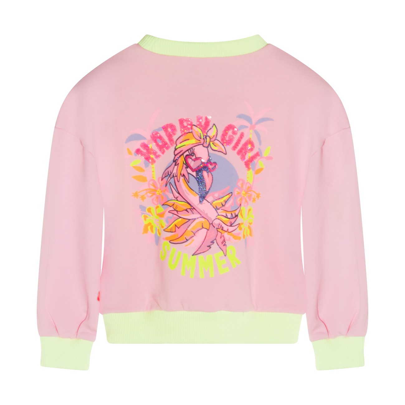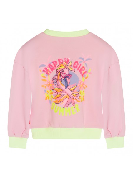 Pink and yellow cotton sweatshirt from Billieblush featuring long sleeves, round collar, frontal and back stamp, elasticated waist and regular vestibility.
