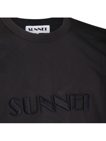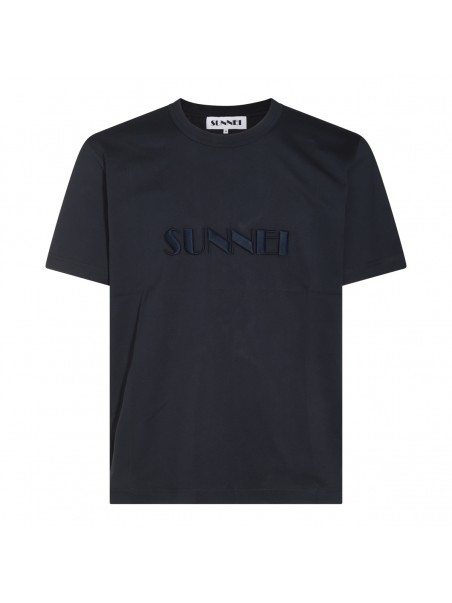 Dark blue cotton t-shirt from Sunnei featuring short sleeves, round collar, frontal print and regular vestibility.