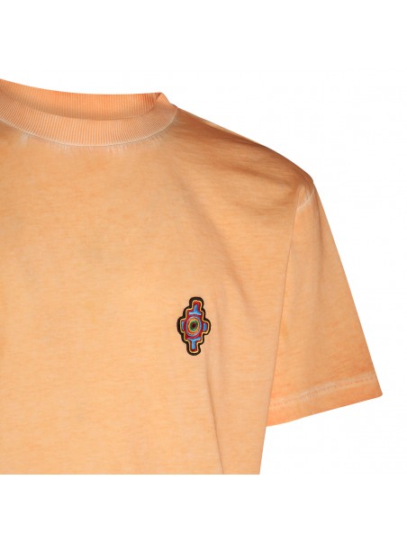 Orange cotton Sunset Cross T-shirt from Marcelo Burlon featuring logo patch at the chest, round neck , straight hem and short sleeves.