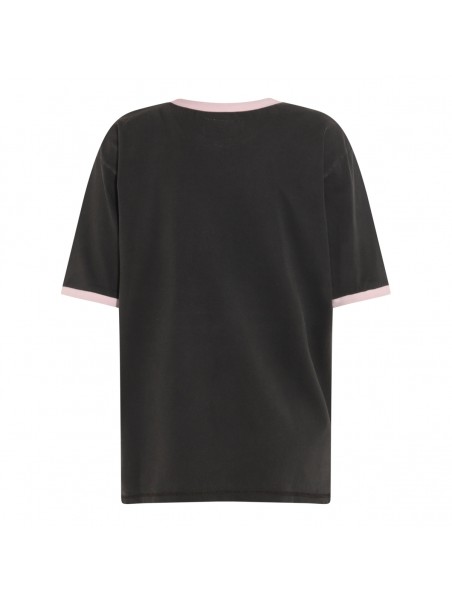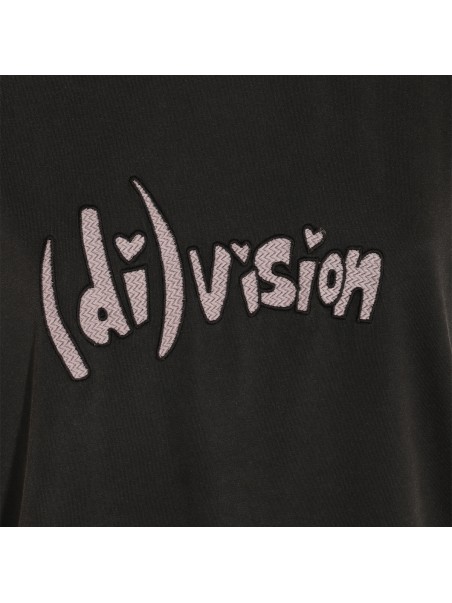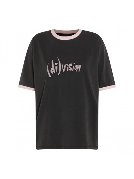 Black cotton t-shirt from (Di)vision featuring round collar, short sleeves, oversize vestibility and frontal print.