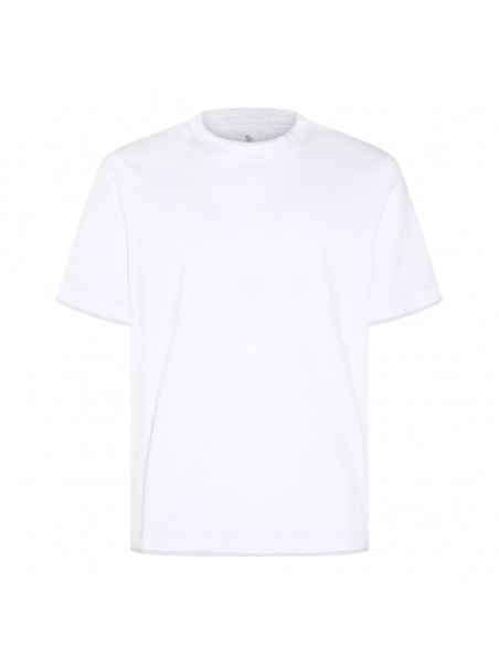 White cotton t-shirt from Brunello Cucinelli featuring short sleeves, round collar and regular vestibility.
