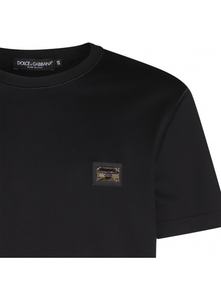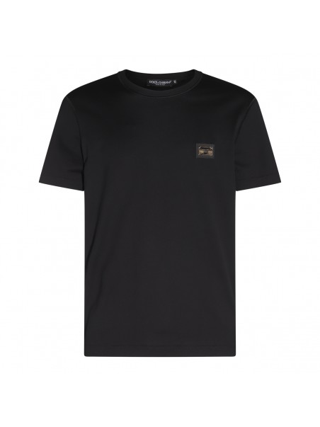 Black cotton t-shirt from Dolce&Gabbana featuring short sleeves, round collar, logo patch and regular vestibility.