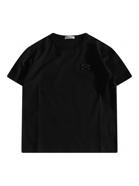 Black cotton t-shirt from Dolce&Gabbana featuring round collar, short sleeves, regular vestibility and logo detail.