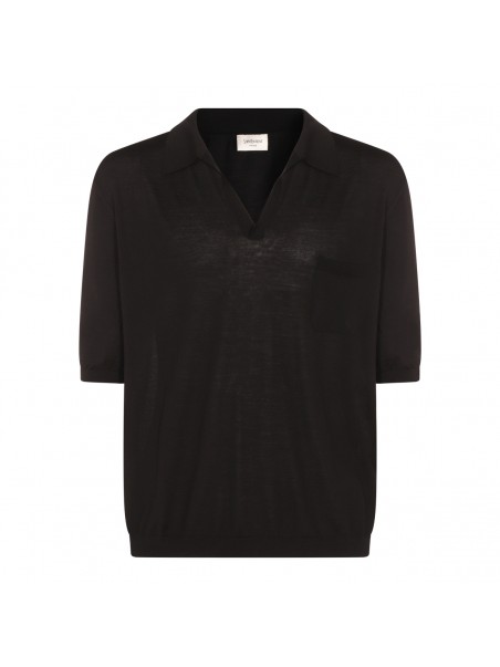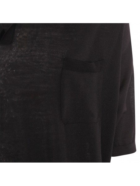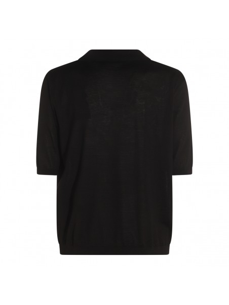 Black wool polo shirt from Saint Laurent featuring short sleeves, polo shirt collar, ribbed hem and soft vestibility.