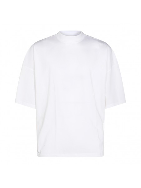 White cotton T-shirt from Jil Sander featuring mock collar, short sleeves and soft vestibility.