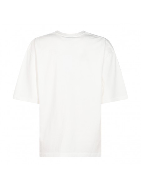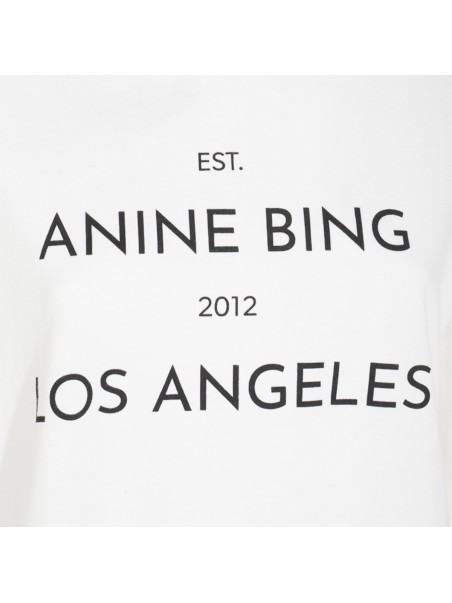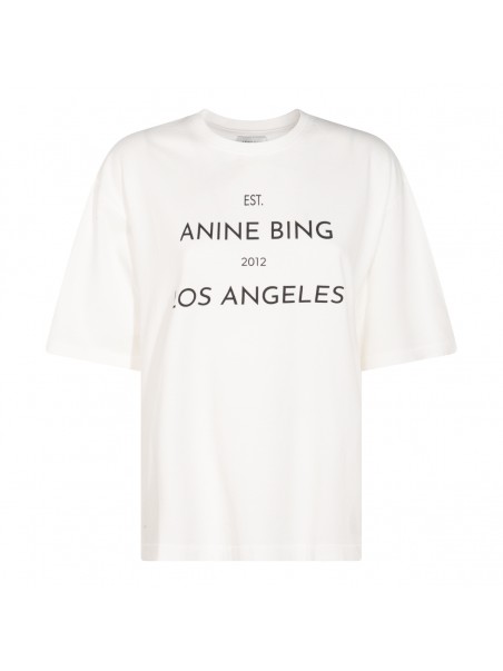 White cotton t-shirt from Anine Bing featuring round collar, short sleeves, printed logo and soft vestibility.
