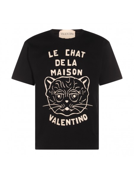 Black cotton t-shirt from Valentino featuring round collar, short sleeves, print and regular vestibility.