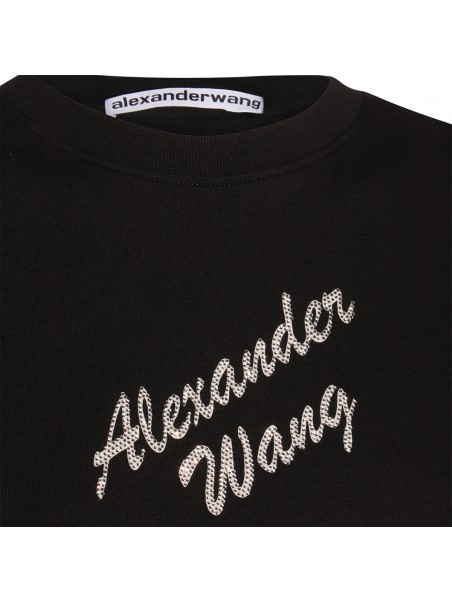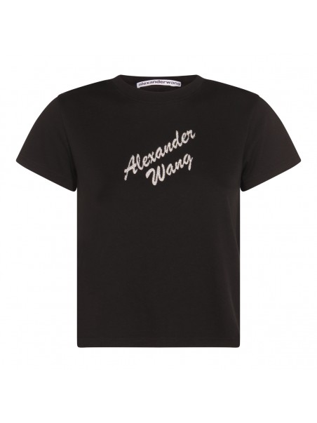 Black cotton t-shirt from Alexander Wang featuring round collar, round collar, frontal logo and regular vestibility.