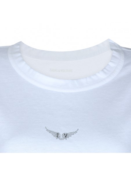 White t-shirt from Zadig & Voltaire featuring round collar, short sleeves, logo and regular vestibility.