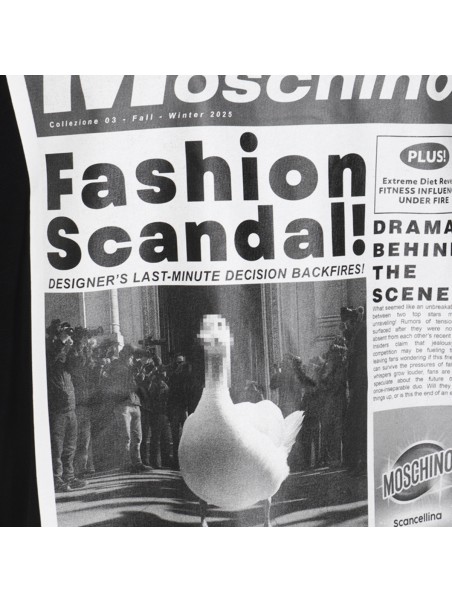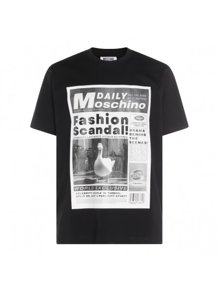 Black cotton t-shirt from Moschino featuring round collar, short sleeves, frontal print and regular vestibility.
