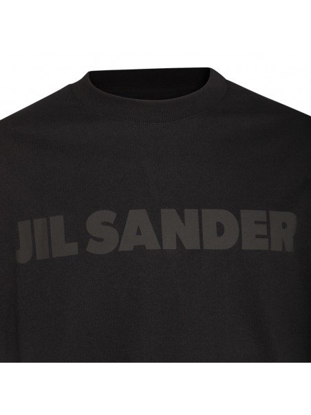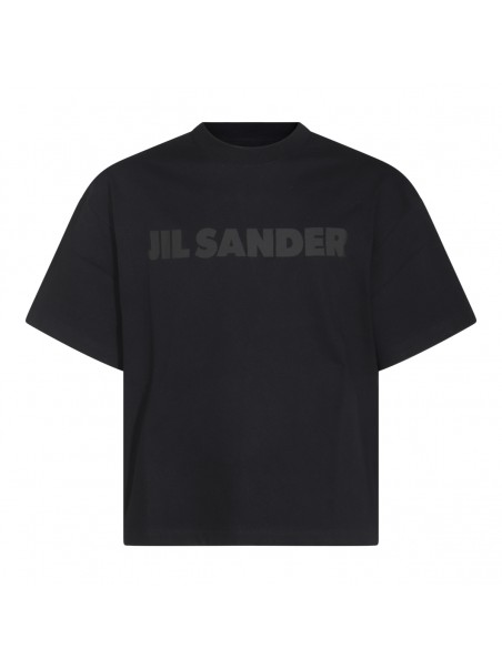 Black cotton t-shirt from Jil Sander featuring round collar, short sleeves, frontal logo and oversize vestibility.