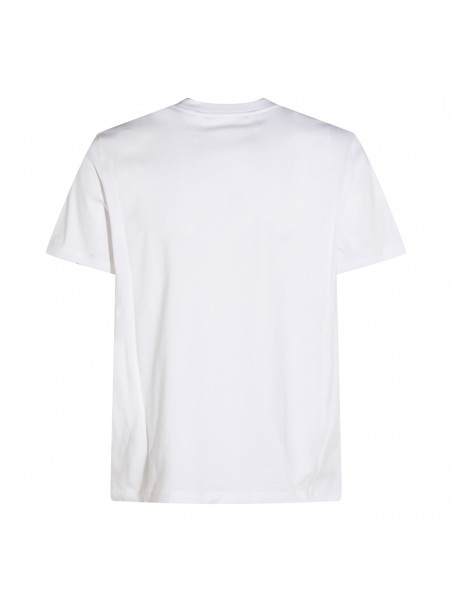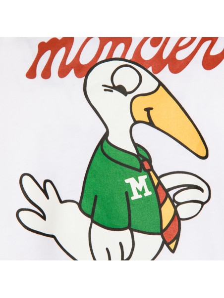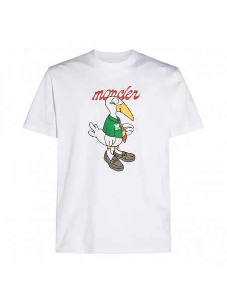 White cotton t-shirt from Moncler featuring round collar, short sleeves and frontal print.