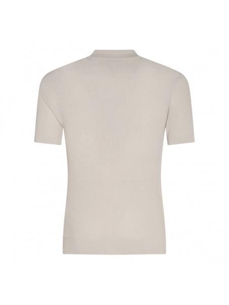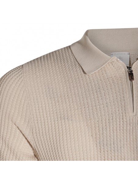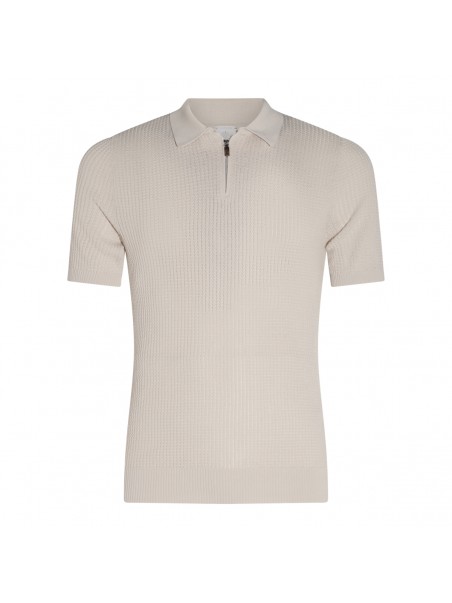 Camel cotton polo shirt from Eleventy featuring short sleevees, polo shirt collar with zip and soft vestibility.