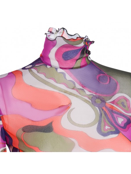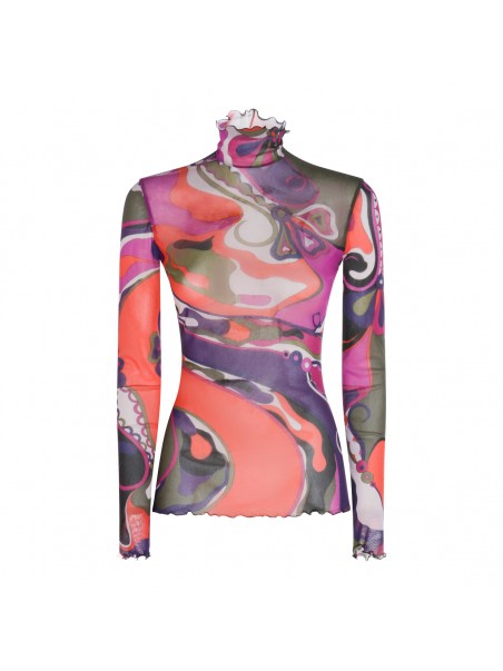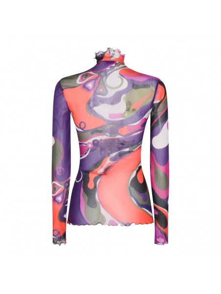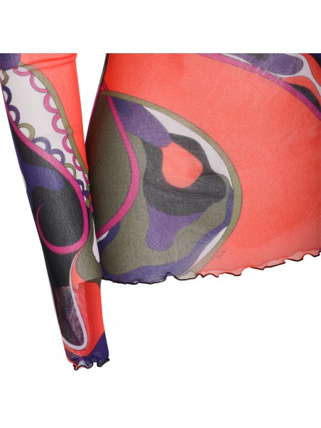 Multicolor t-shirt from Emilio Pucci featuring high collar, long sleeves, all-over multicolor pattern and slim fit.