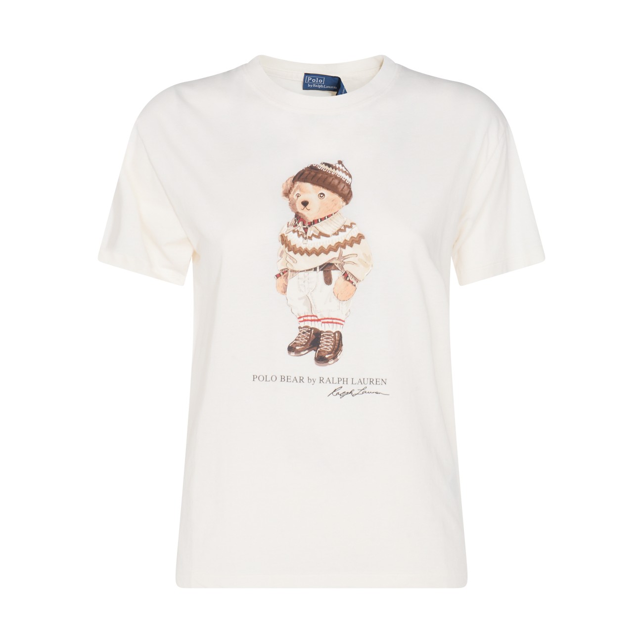 White cotton t-shirt from Polo Ralph Lauren featuring round collar, short sleeves, frontal print and regular vestibility.