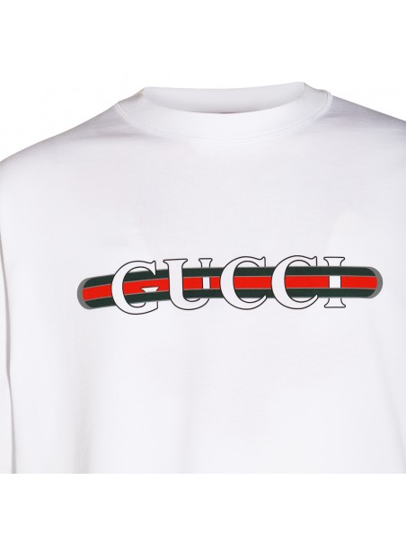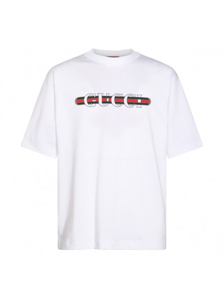 White cotton t-shirt from Gucci featuring round collar, short sleeves, logo and regular vestibility.