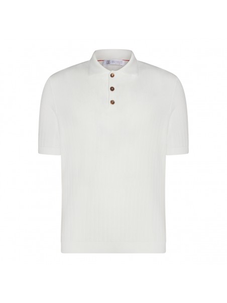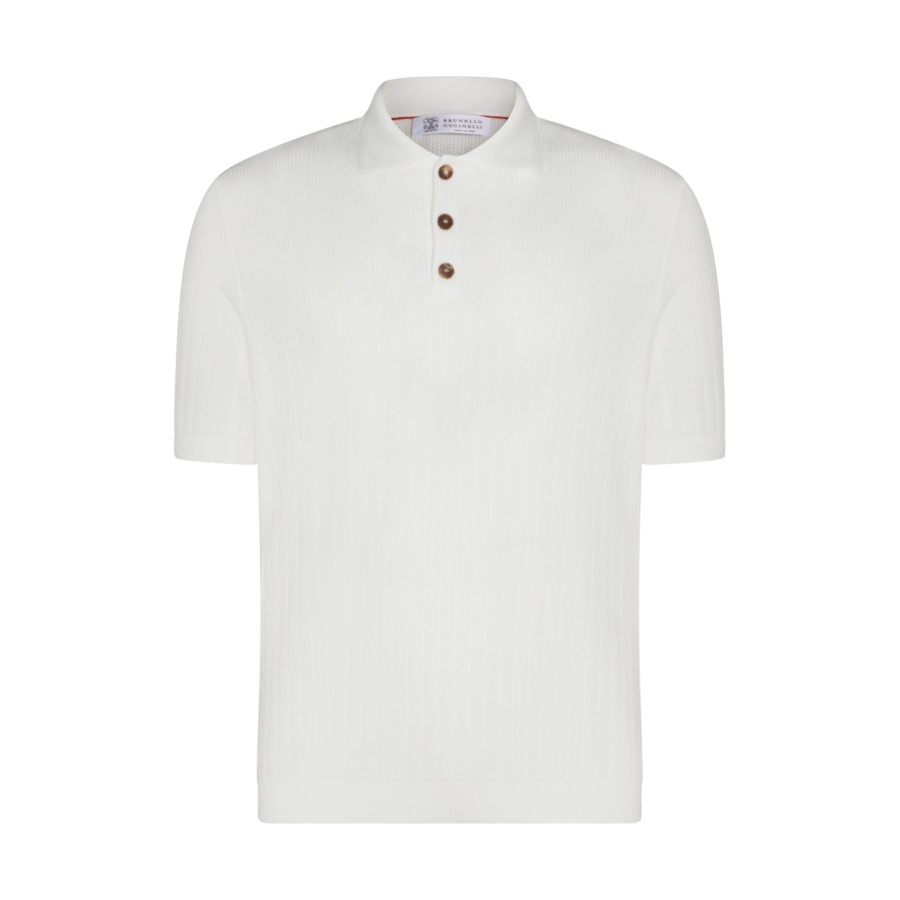 White cotton polo shirt from Brunello Cucinelli featuring short sleeves, polo shirt collar and regular vestibility.