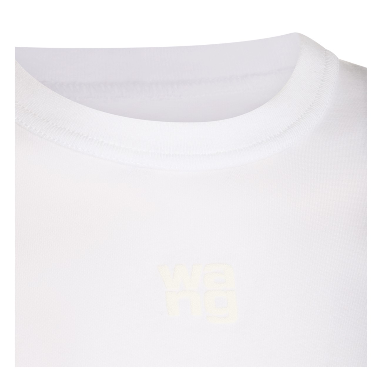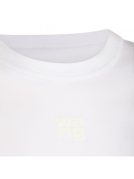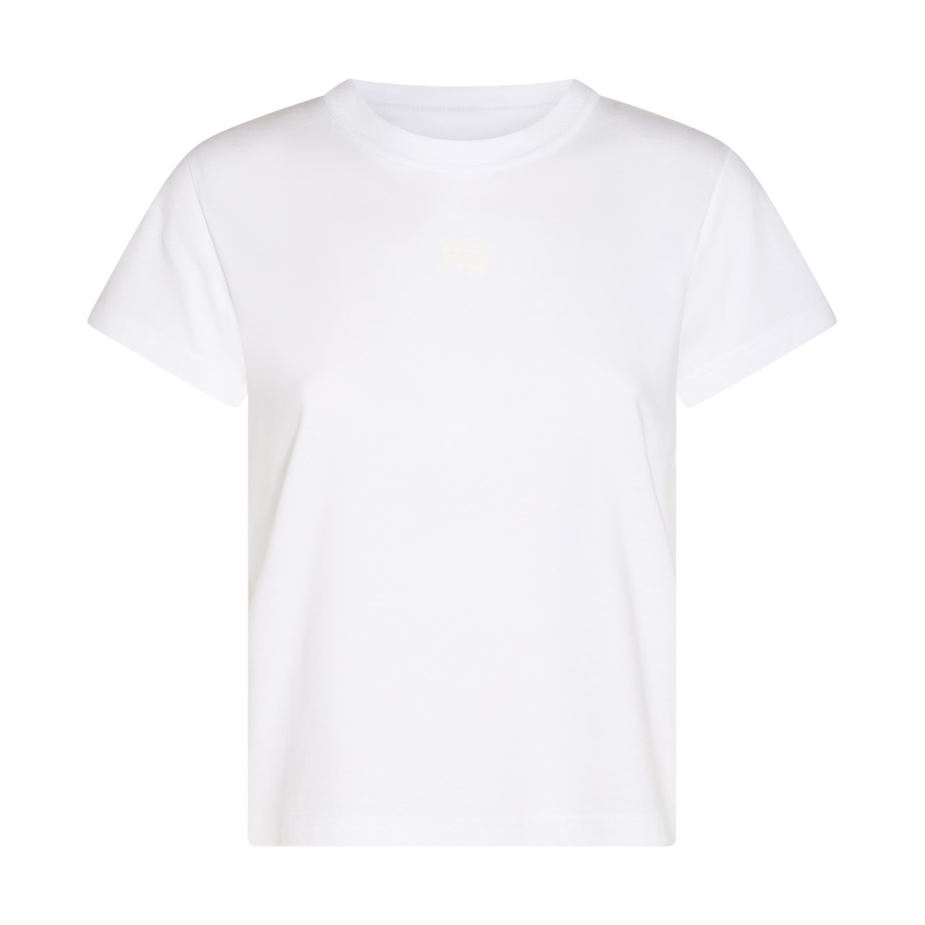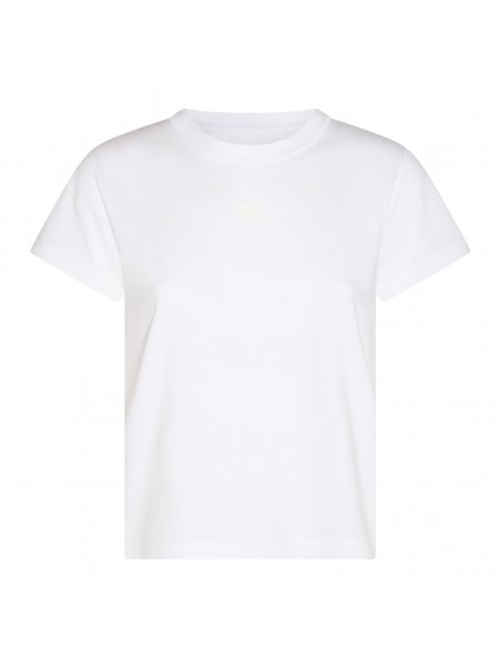 White cotton t-shirt from Alexander Wang featuring round collar, short sleeves, frontal logo patch and regular vestibility.