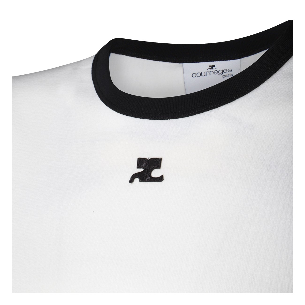 Heritage white cotton t-shirt from Courreges featuring short sleeves, round collar, frontal logo and regular vestibility.