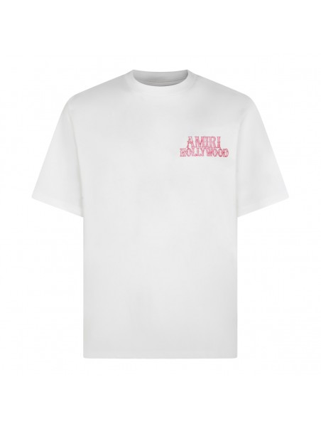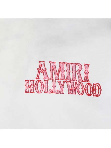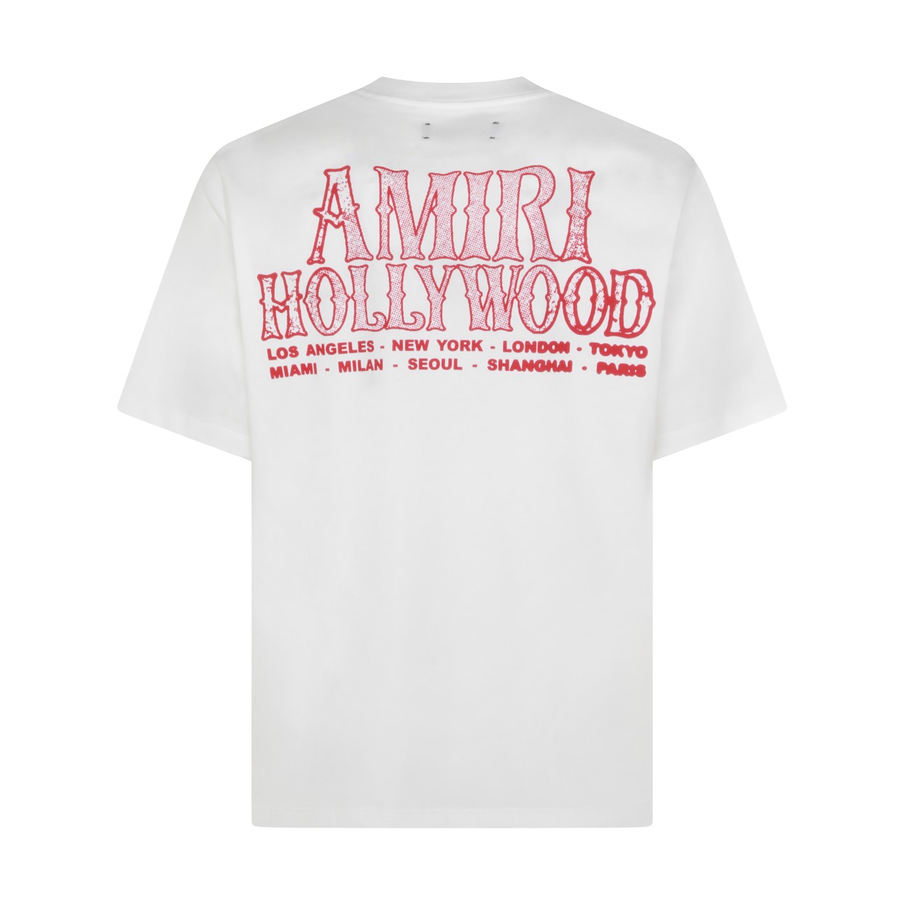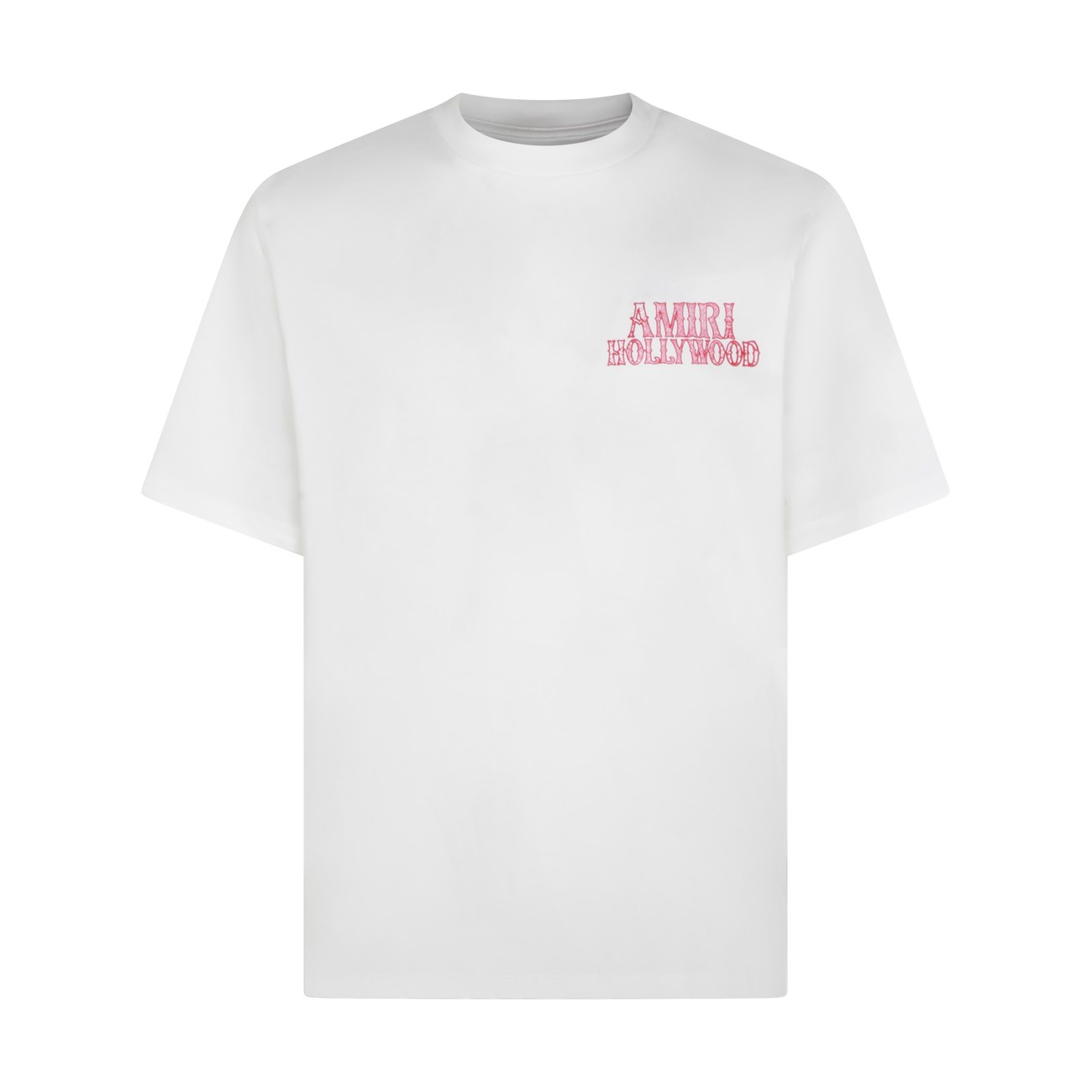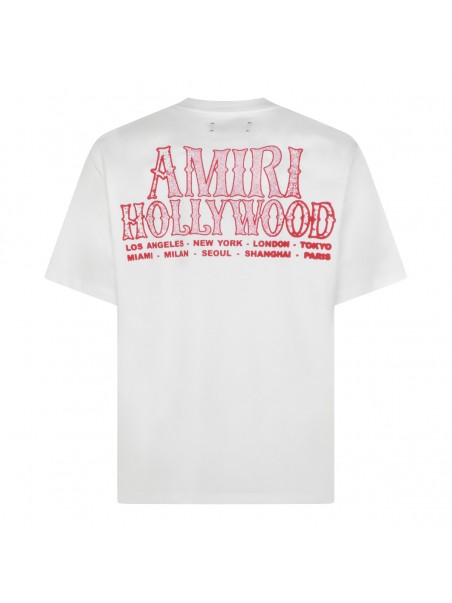 Ivory cotton t-shirt from Amiri featuring crew neck, short sleeves, front and back logo stamp and regular vestibility.