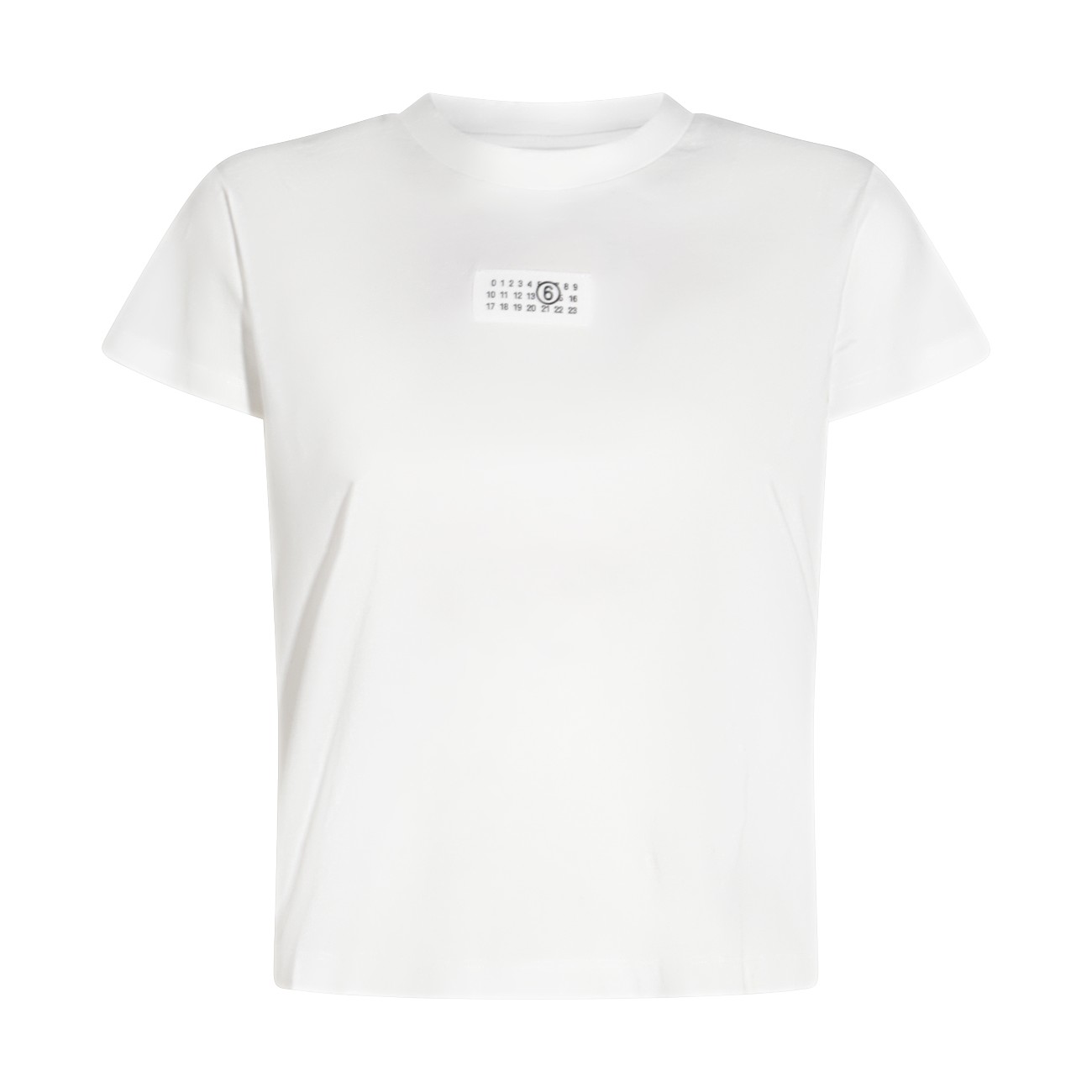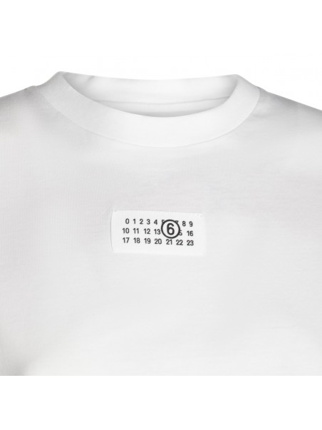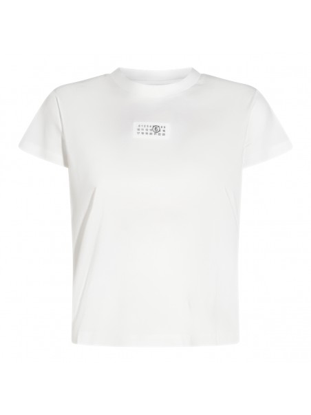 White cotton t-shirt from MM6 Maison Margiela featuring round collar, short sleeves, frontal logo and regular vestibility.
