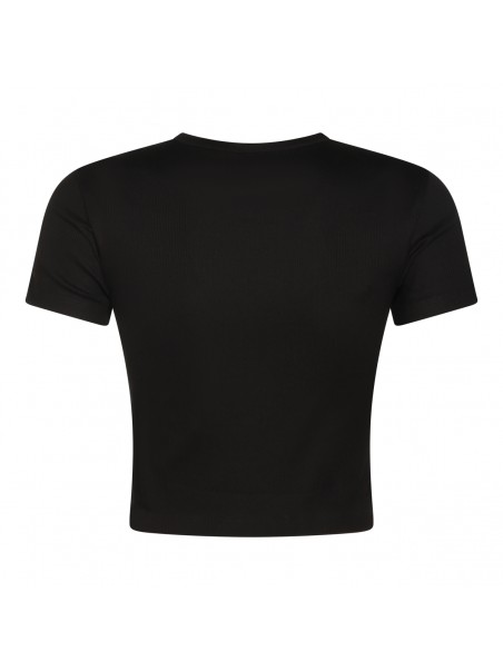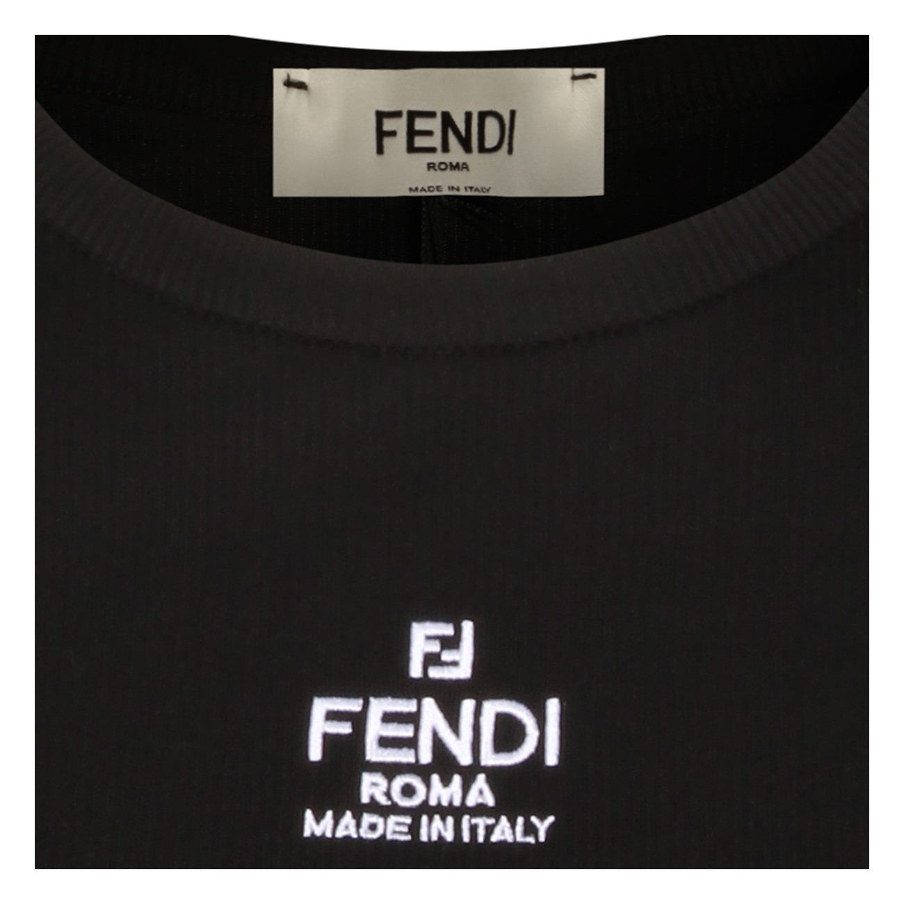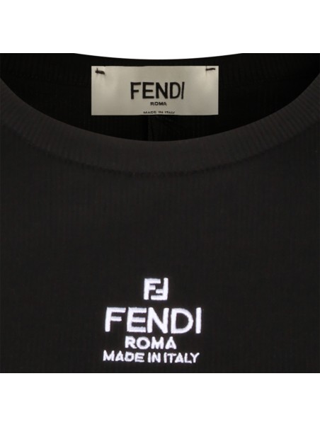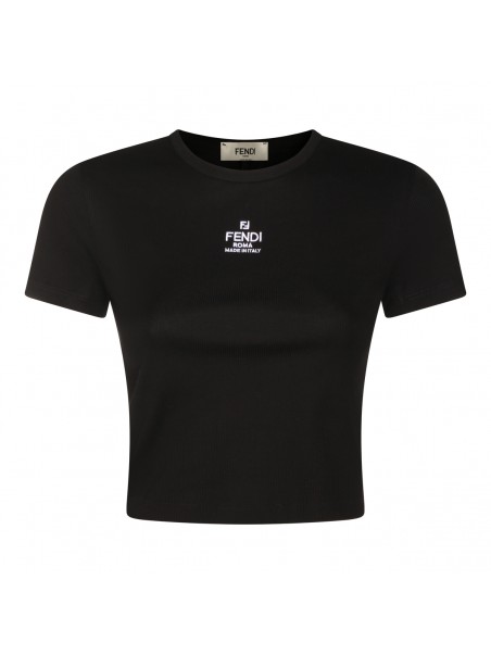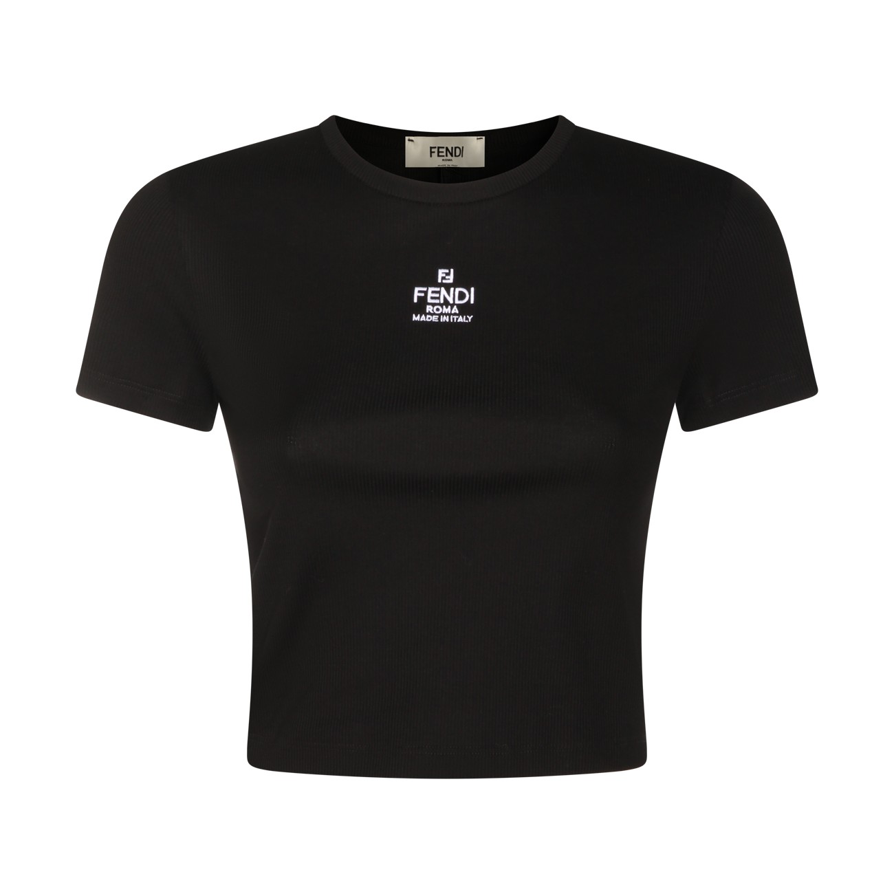 Black cotton t-shirt from Fendi featuring crew neck, short sleeves, frontal logo and short length.