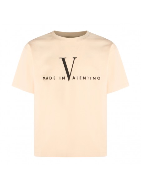 Beige cotton t-shirt from Valentino featuring crew neck, frontal stamp, short sleeves and regular vestibility.