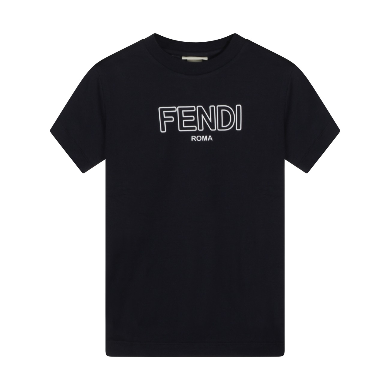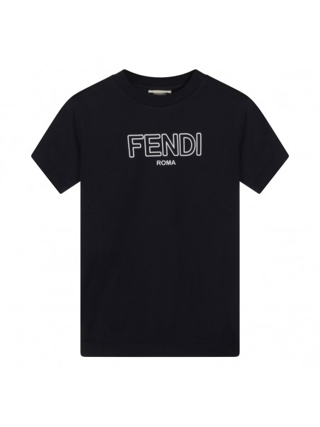 Dark blue cotton t-shirt from Fendi featuring crew neck, short sleeves, frontal logo stamp and regular vestibility.