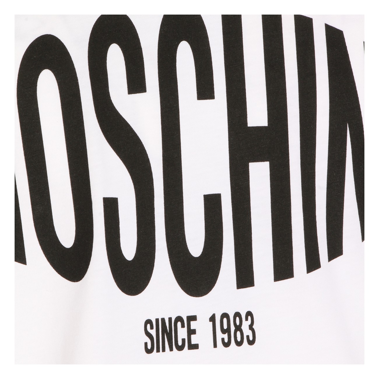 White cotton t-shirt from Moschino featuring crew neck, short sleeves, frontal logo and regular vestibility.