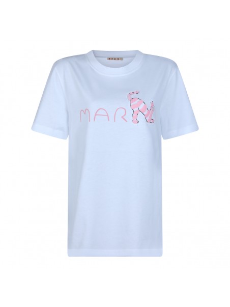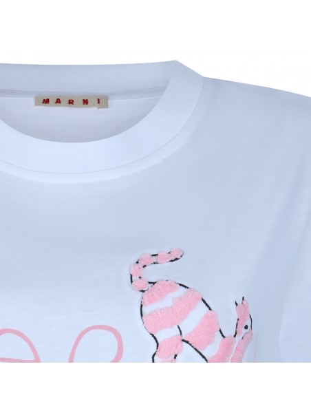 White cotton t-shirt from Marni featuring crew neck, short sleeves, frontal stamp and regular vestibility.
