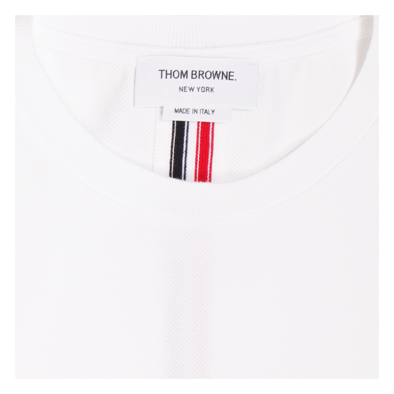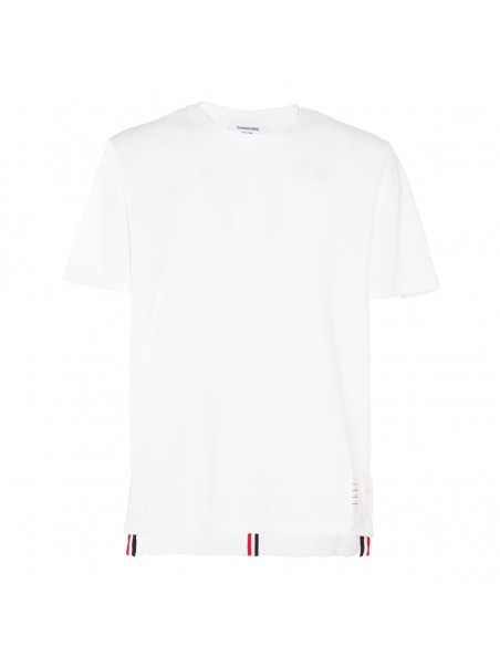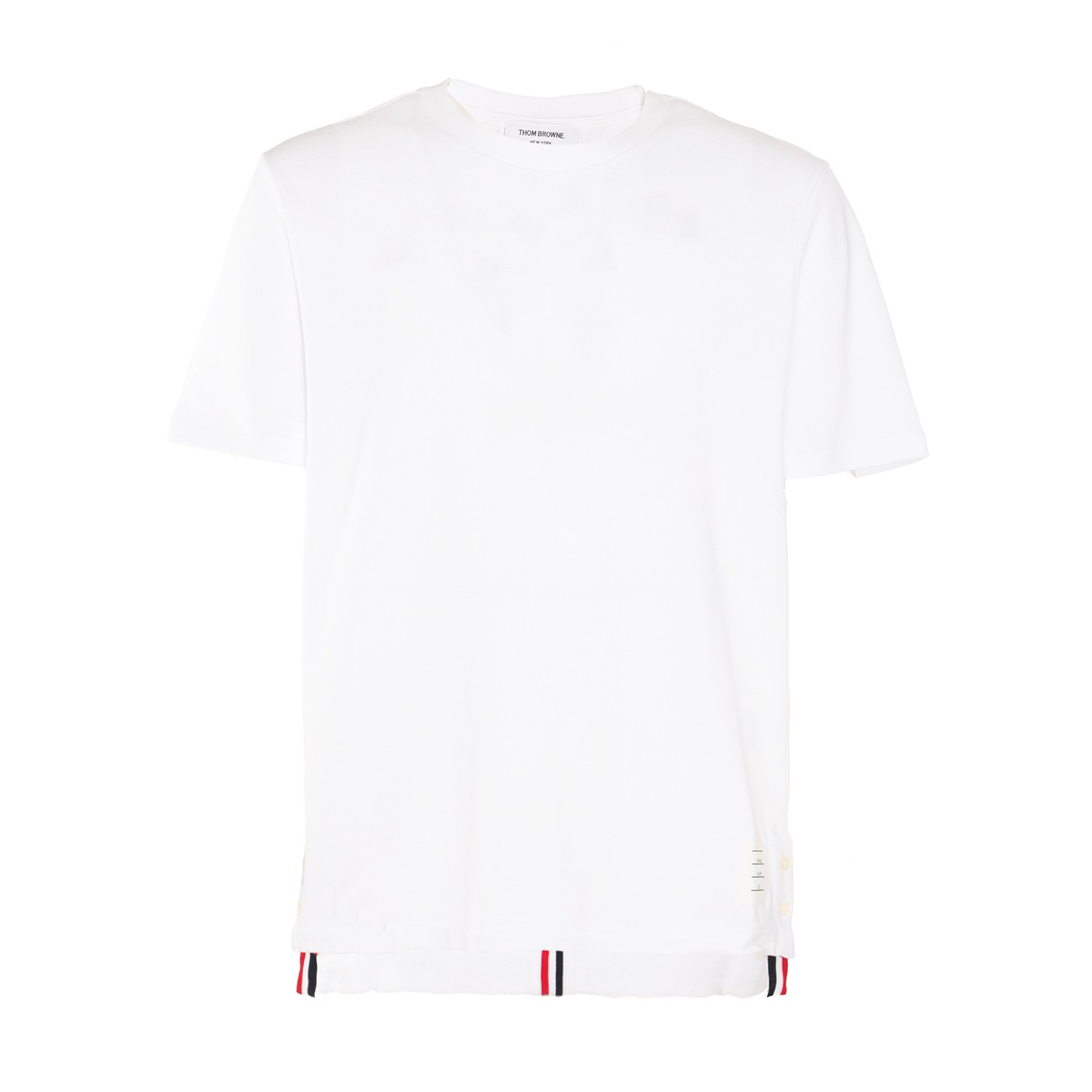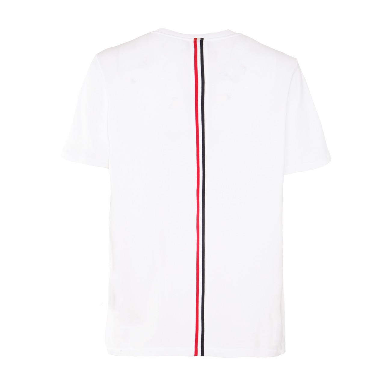 White cotton t-shirt from Thom Browne featuring crew neck, short sleeves, back detail and regular vestibility.