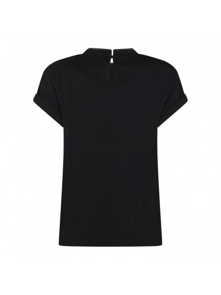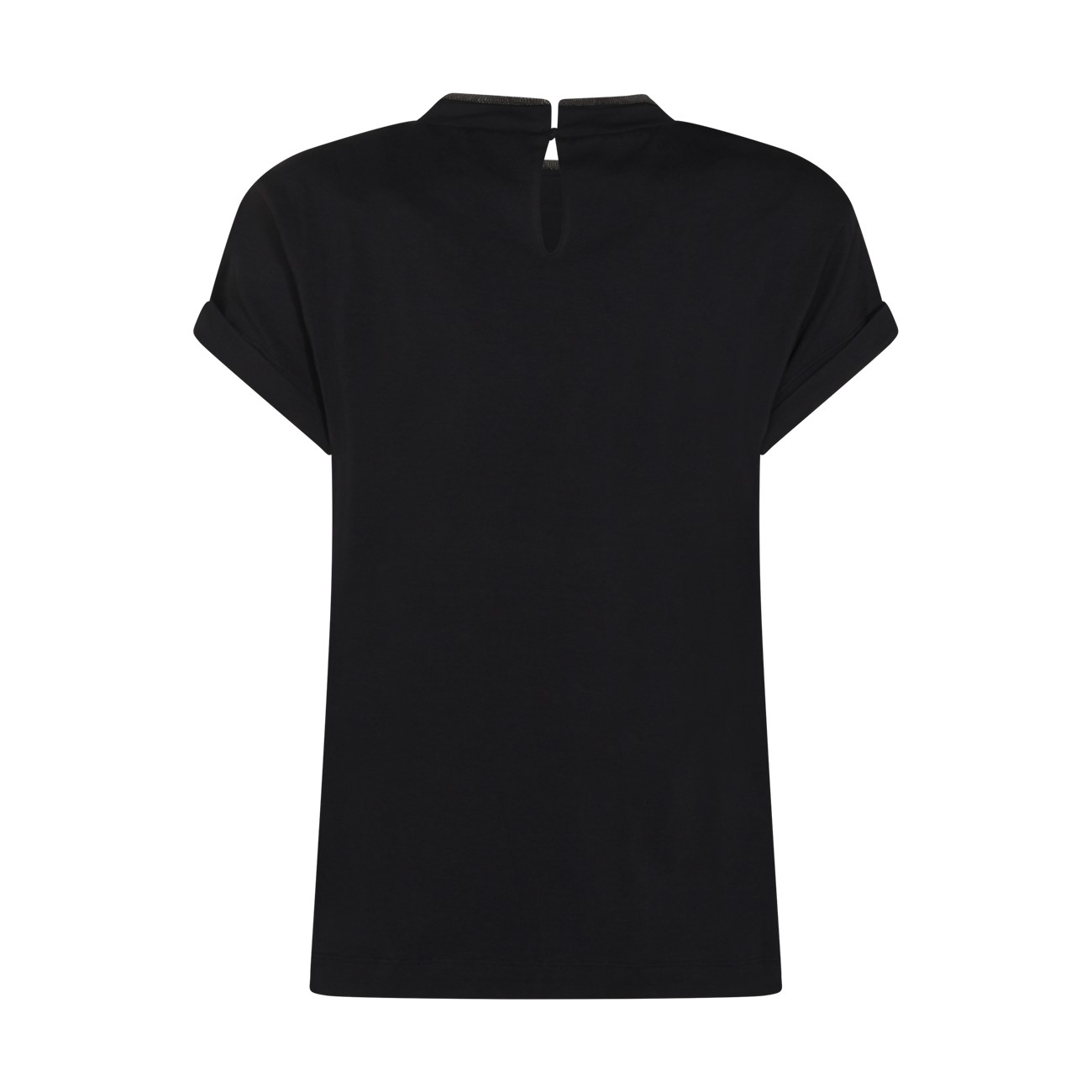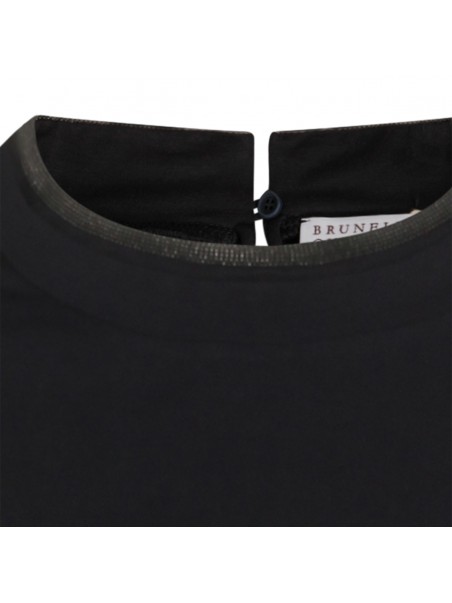 Navy cotton t-shirt from Brunello Cucinelli featuring round toe, short sleeves, back button fastening, collar details and regular vestibility.