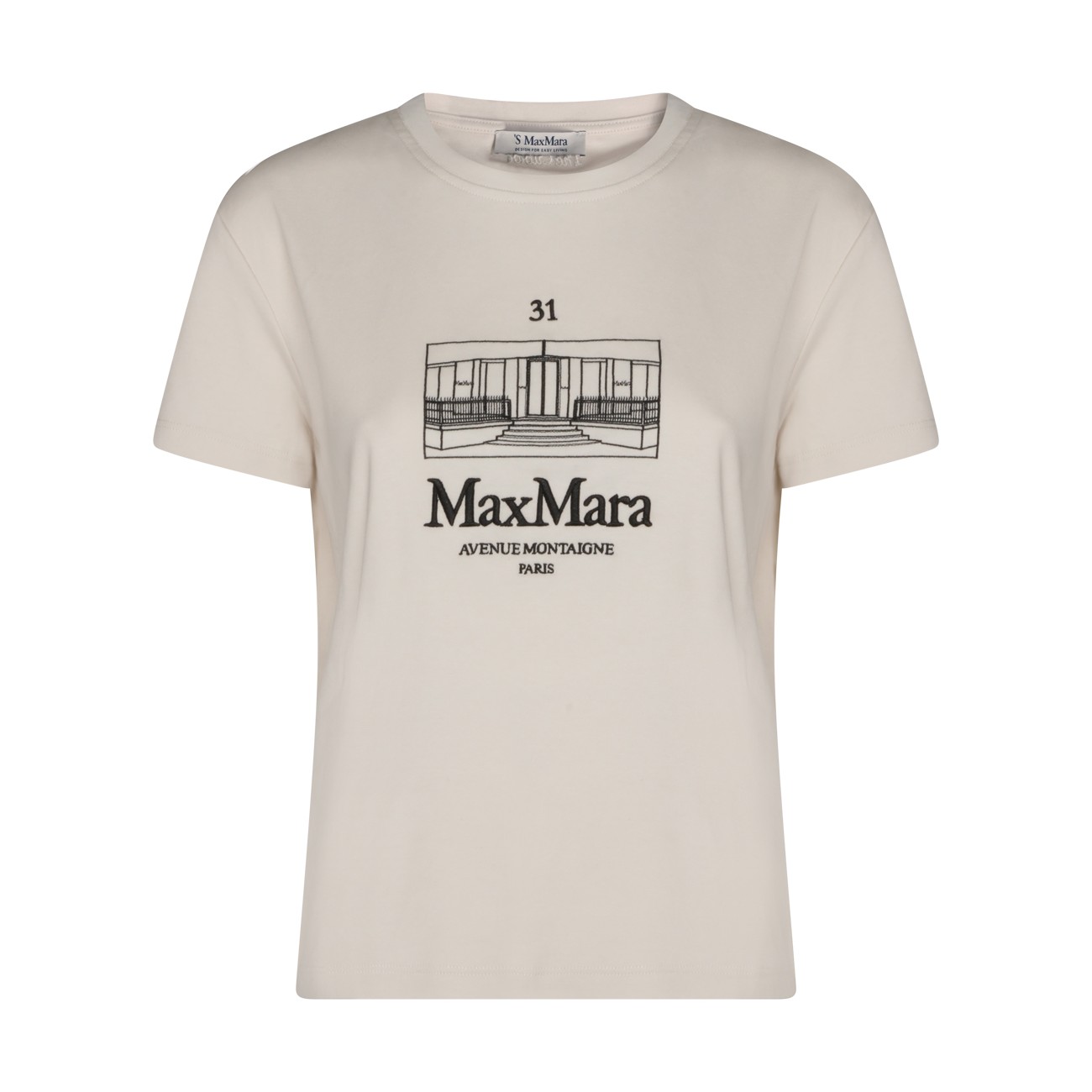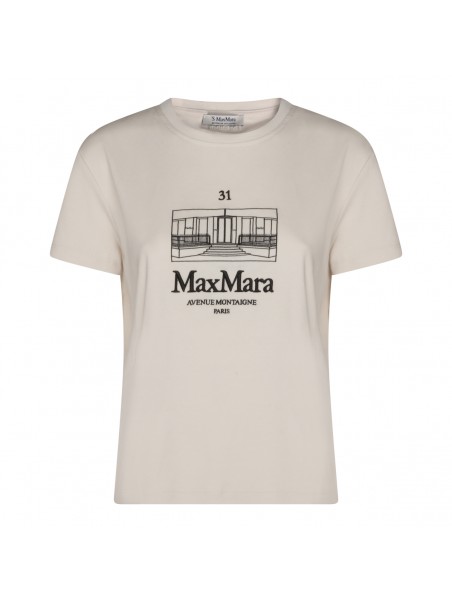 White cotton t-shirt from S Max Mara featuring crew neck, short sleeves, frontal logo and regular vestibility.