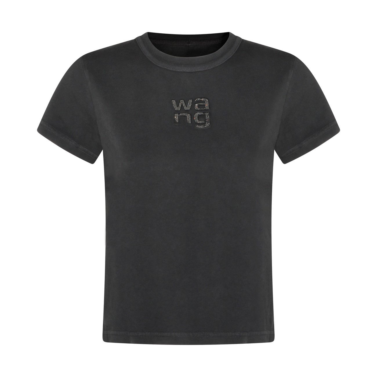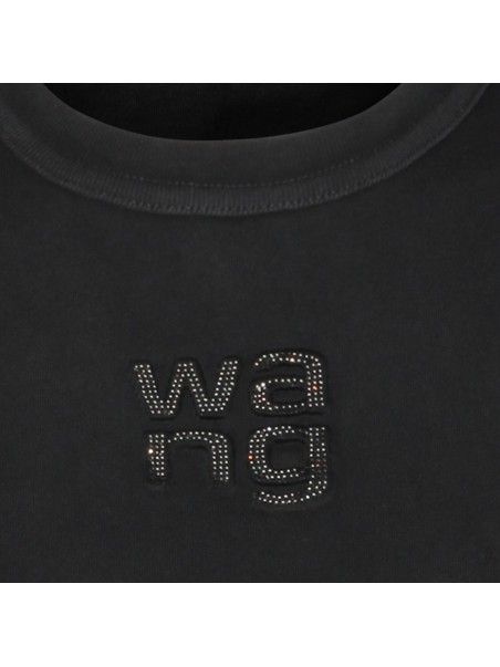 Black cotton t-shirt from Alexander Wang featuring crew neck, short sleeves, frontal logo and regular vestibility.