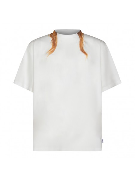 White cotton t-shirt from MM6 Maison Margiela featuring crew neck, short sleeves, frontal stamp and regular vestibility.