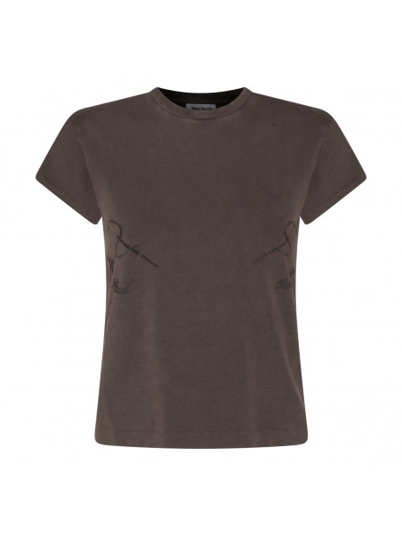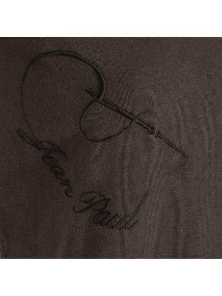 Dark grey cotton t-shirt from Jean Paul Gaultier featuring crew neck, short sleeves, frontal stamp and regular vestibility.