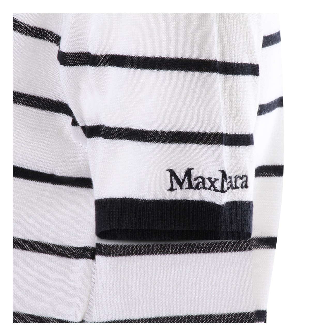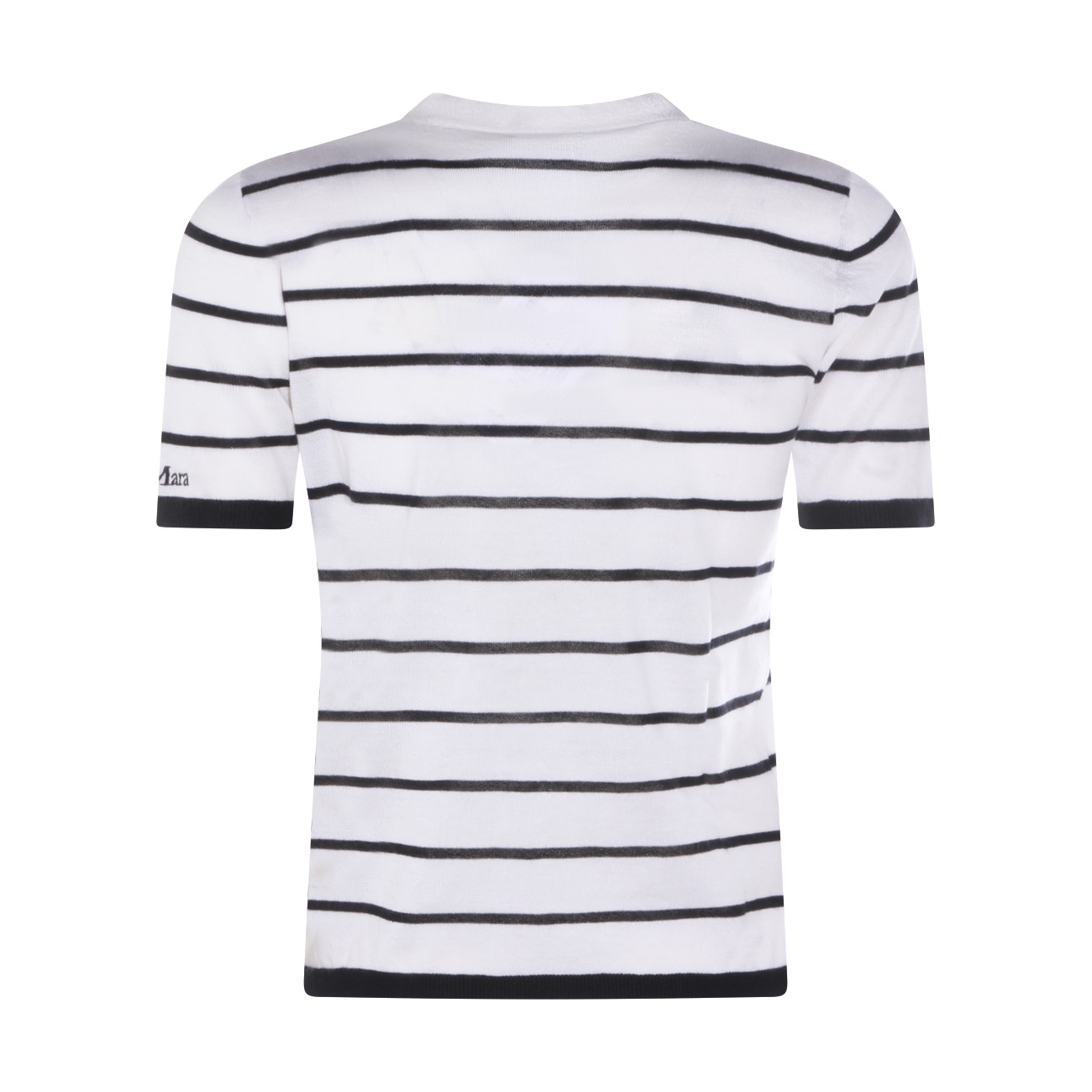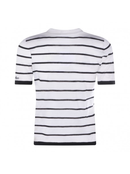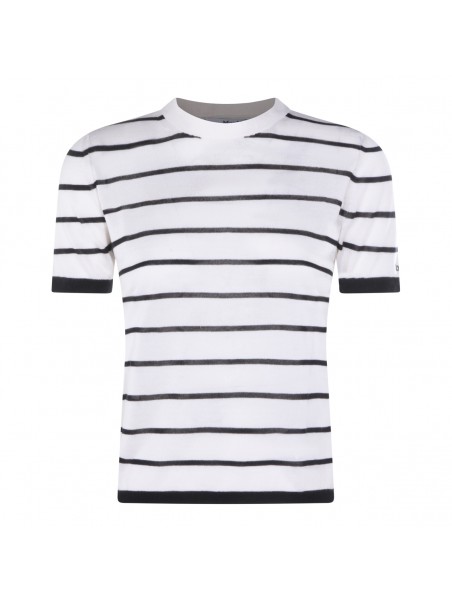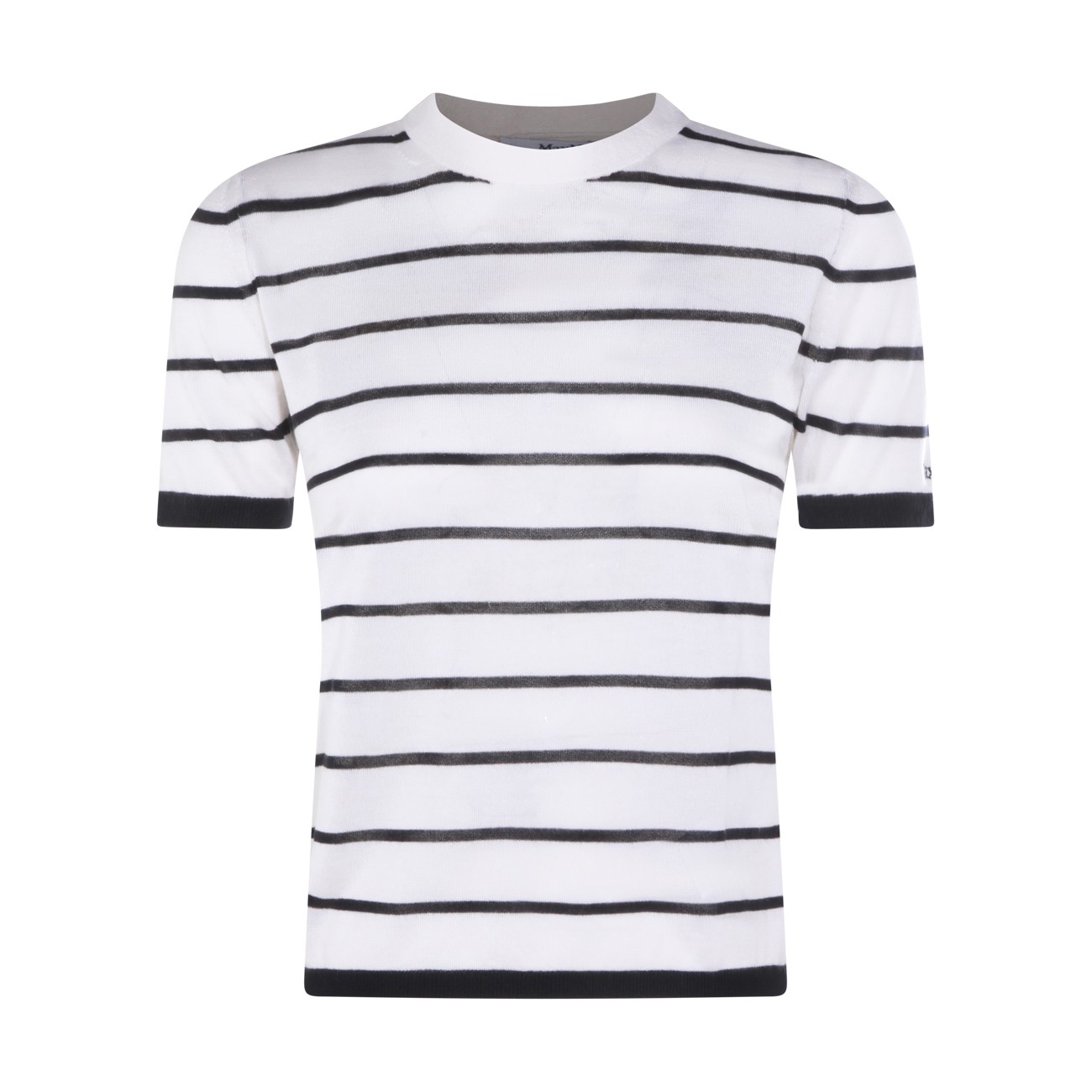 White and blue wool blend t-shirt from Max Mara featuring round neck, short sleeves, all over stripes and regular vestibility.